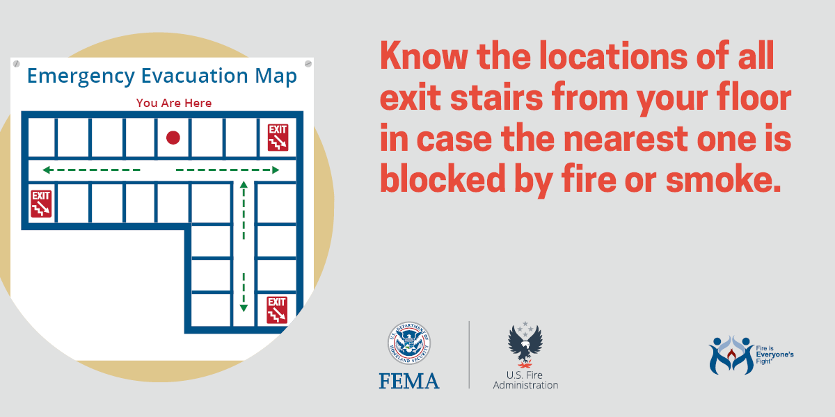 • Learn your building evacuation plan if you have one. Create and practice an escape plan for your specific apartment.
